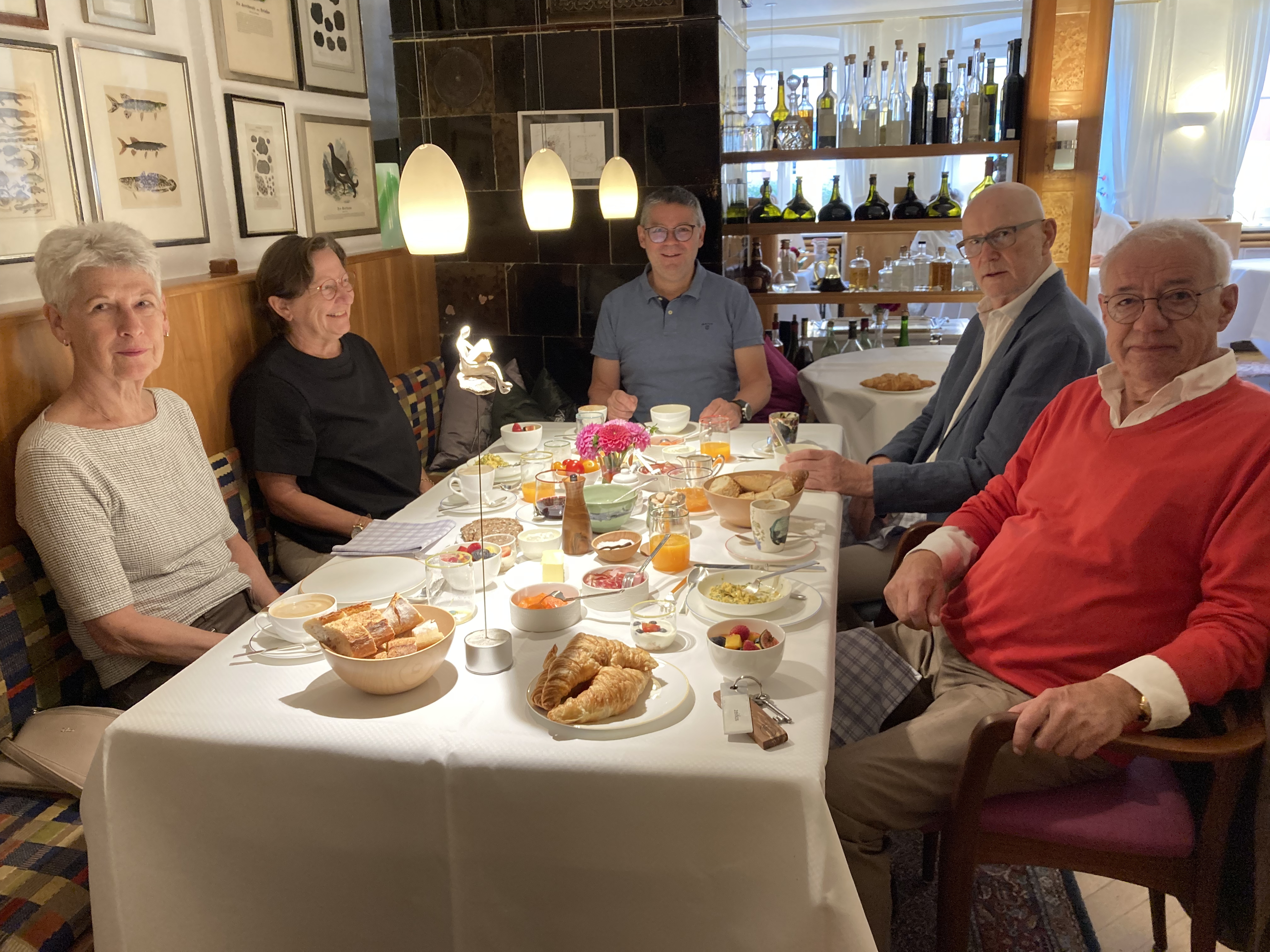Nach 86 Bacchantischen Taumeleien war das Interese an diesem Anlass nicht mehr bei allen Teilnehmenden gleich gross. Wir kamen deshalb überein, den BACCHANTISCHEN TAUMEL würdevoll zu begraben. Dazu haben wir uns im Hotel Hirschen in Sulzburg getroffen und uns von Douce Steiner in würdevollem Rahmen gebührend bekochen lassen. Das Essen war - wie zu erwarten - hervorragend, ebenso die lokalen Weine. Leider gibt es von diesem "Leichenmahl" keine Bilder, lediglich vom üppigen Frühstück danach.